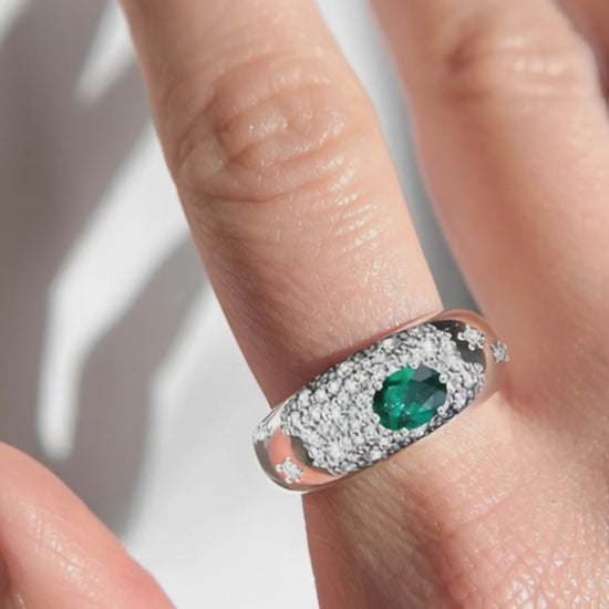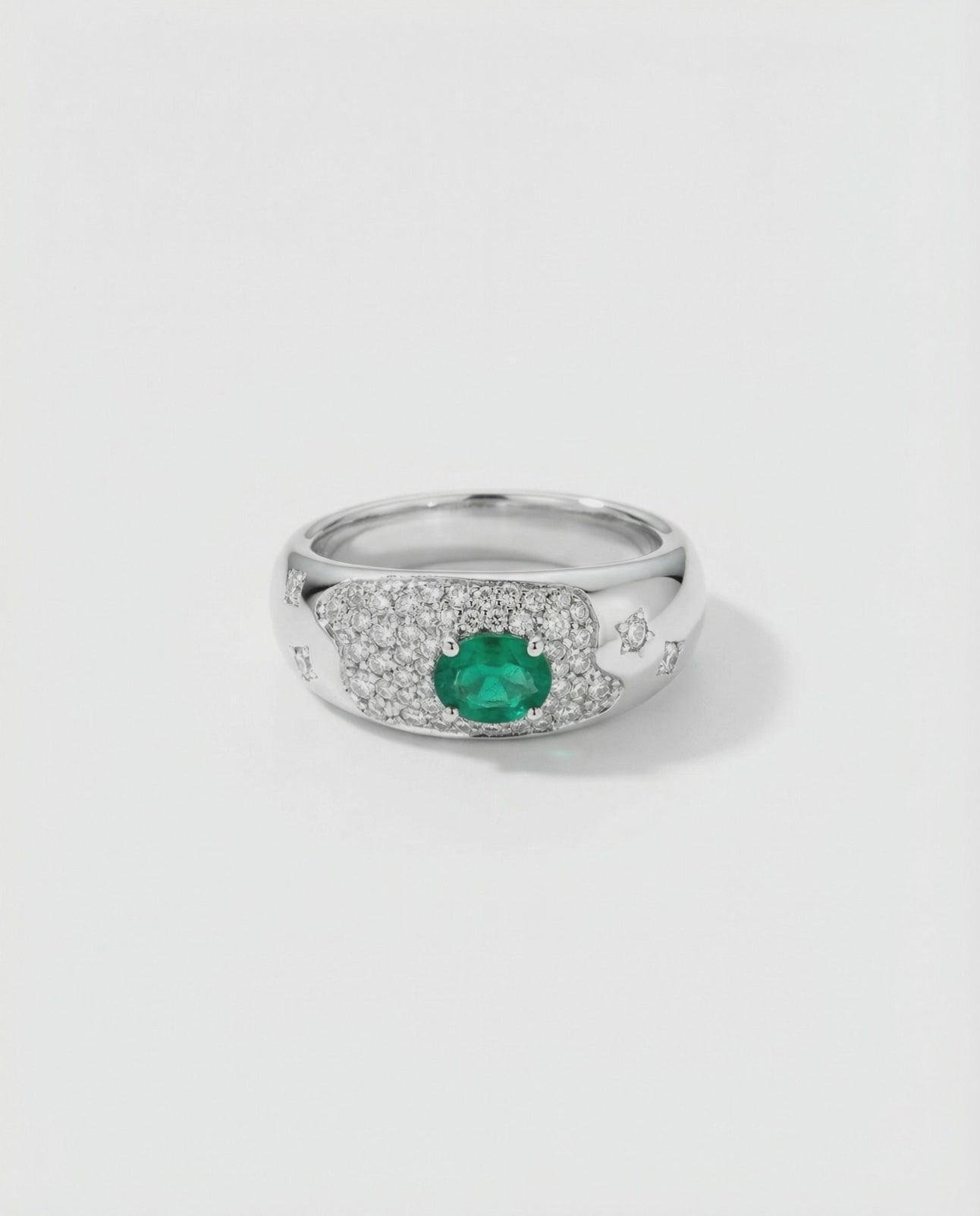Step into the garden section of our Sweet Shoppe. The Emerald Bonbon features a lush, forest-green Emerald that looks like a drop of liquid mint. It’s bold, it’s bright, and it’s wrapped in our signature "confectioner’s sugar" (a.k.a. a generous halo of pavé diamonds).