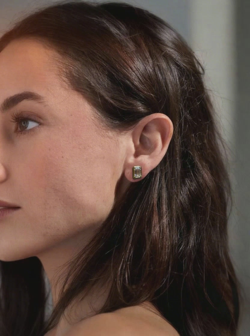 A standout in the Cactus Collection, these 18k yellow gold studs feature emerald-cut diamonds mirroring desert architecture. The stone’s linear clarity contrasts with sculptural, "button" backs inspired by succulent volumes. Punctuated by hand-finished spikes, these comfortable earrings offer a defiant yet refined blend of high-fashion structure and natural softness.