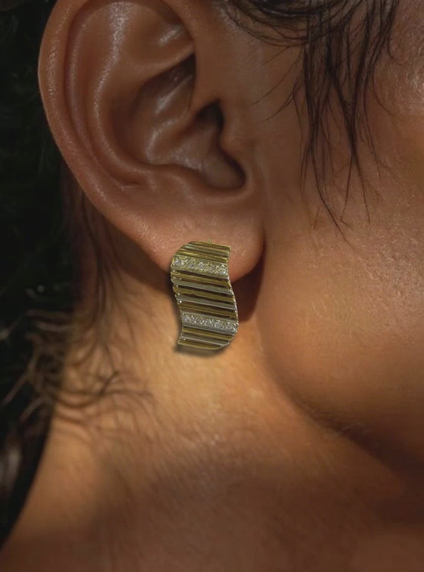 Capture the fluid rhythm of the Sierra shoreline with the Tahoe Dangle Earrings, a striking extension of our signature Tahoe series. Designed to mimic the vertical play of light as it cascades down a waterfall or ripples across a deep lake, these earrings feature a sophisticated drop silhouette that moves with effortless grace. Each earring is anchored by a sculptural arc of 18k yellow gold, which transitions into a shimmering stream of 950 platinum—a mixed-metal palette that mirrors the sun setting over a cool, glass-like horizon.