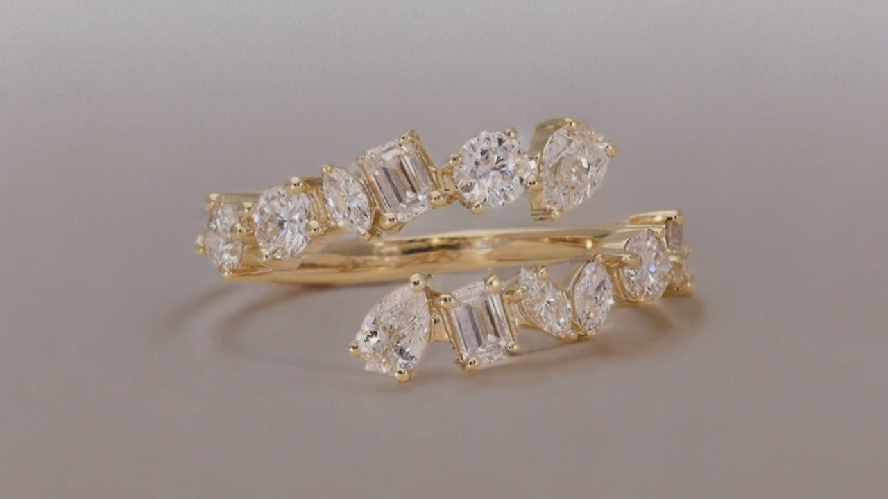 Elevate your evening attire with the centerpiece of our Dinner Party Collection. Designed to mimic the fluid grace of a silk ribbon, this Coil Wrap Ring features a seamless, bypass silhouette that mirrors the effortless flow of high-end gala wear.