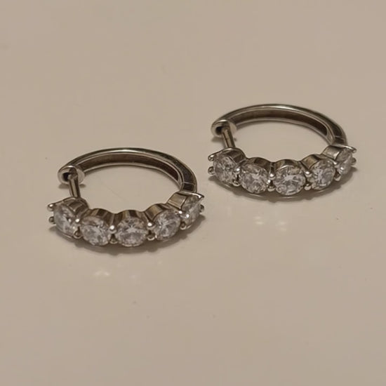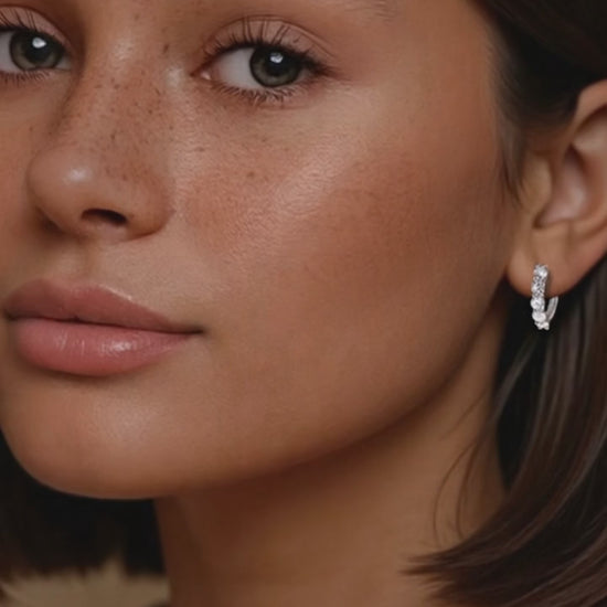 Think of these as your style foundation. Our diamond hoops are the 'white tee' of your jewelry box—essential, effortless, and impossible to get wrong. Designed to sit close to the lobe with a row of high-wattage diamonds, they deliver a refined spark that feels as good at 8 AM as it does at midnight. Wear them solo for a clean look, or use them to anchor your most ambitious ear stack.